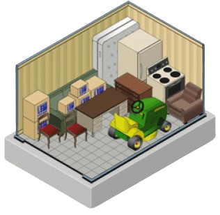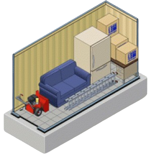 Holds furnishings and appliances of a 2-3 bedroom residence. Can hold compact and some full-size vehicles.
