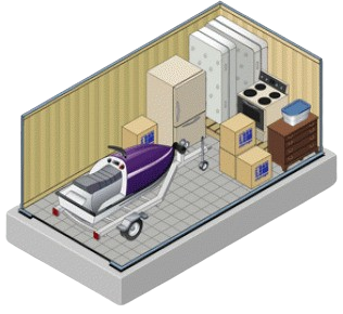 Holds furnishings of a 3-4 bedroom residence, most vehicles, boats, and commercial trailers.